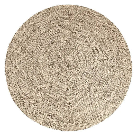 - Tapis rond toile de jute : tressage visible, esprit artisanal affirmé.